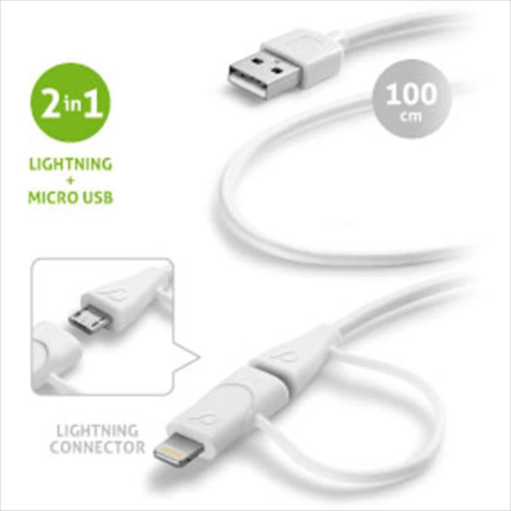 Cavo dati Micro USB con adattatore lightning collegato con laccio salva-connettore. – Lunghezza cavo: 100cm