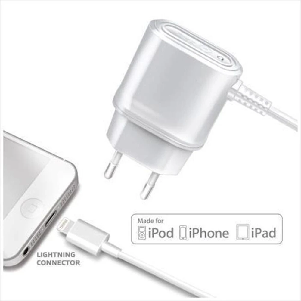 | Descrizione marketing | CARICABATTERIA DA RETE BIANCO IN PLASTICA Caricabatterie da rete bianco con connettore Lightning "Made for iPhone". Dotato di tecnologia switching, si adatta automaticamente alle diverse tensioni dei paesi UE ed extraeuropei (110-240V), ha un output di 1A. Piccolo e leggero, è comodo da usare e ha un design innovativo. Luce bianca led. |
