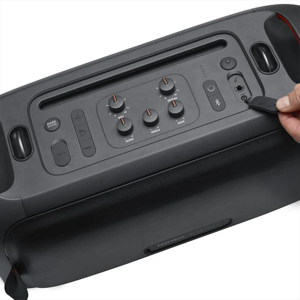 Porta la festa con te e canta ovunque vai. Dalle feste in spiaggia ai festival, JBL PartyBox On-The-Go ti fa vedere, ascoltare e vivere il ritmo. Alza il volume al massimo con i 100 watt del potente e inconfondibile suono JBL, in sincro con uno strabiliante gioco di luci. Accedi ai tuoi brani preferiti tramite connettività Bluetooth, USB, AUX e TWS (True Wireless Stereo) e invita un amico a cantare a squarciagola con i microfoni wireless JBL, oppure sfrutta l’ingresso per gli strumenti per suonare il tuo pezzo preferito. Apribottiglie, cinghia imbottita per il trasporto, batteria ricaricabile e protezione splashproof IPX4: JBL PartyBox On-The-Go ha proprio tutto quello che ti serve per dare vita alla festa… e portarla sempre con te