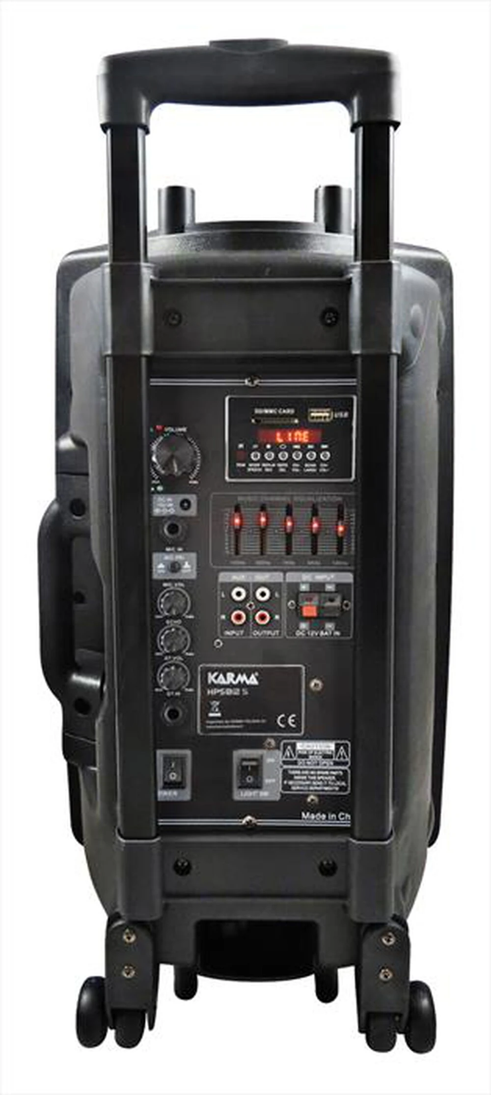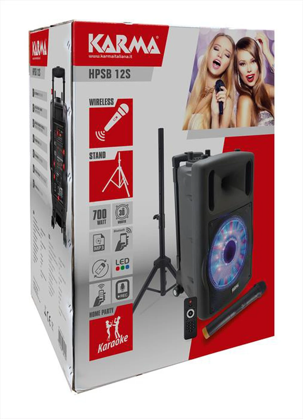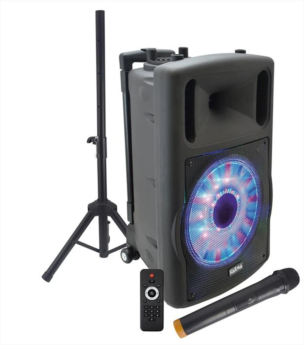 | Altre caratteristiche | • N. 1 ingressi line • 1 Ingressi microfonici • Lettore MP3 • Tweeter piezo 1,5" • Woofer 12" • Ruote Dispone di ruote per il comodo trasporto • Materiale di costruzione Materiale plastico (ABS) • Tipo di radiomicrofono: 1 microfono palmare • Risposta in frequenza: 20Hz – 20KHz • Lettore SD • Funzione di registrazione: registra direttamente su SD/USB • Potenza massima 700W pmpo • Bluetooth |