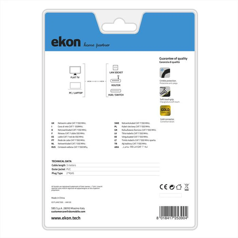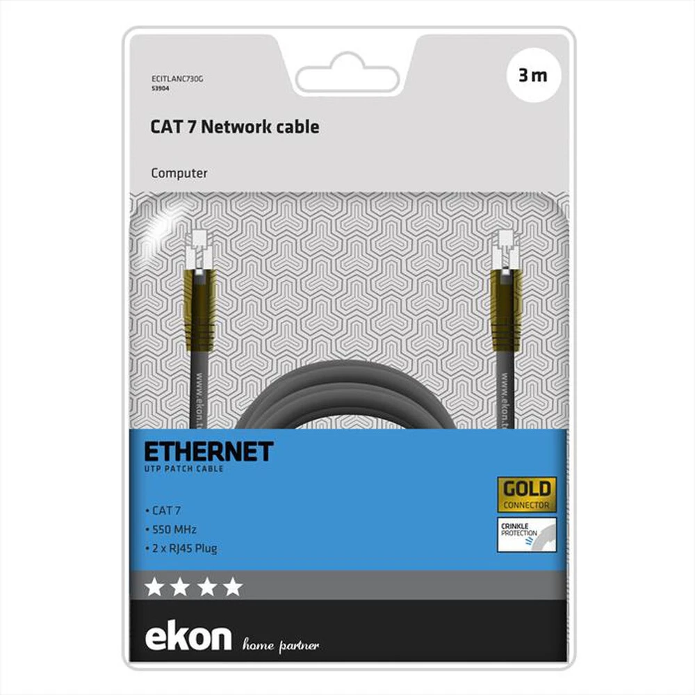 Cavo di rete per PC UTP CAT 7, connettori RJ45 dorati, lunghezza cavo 3 m