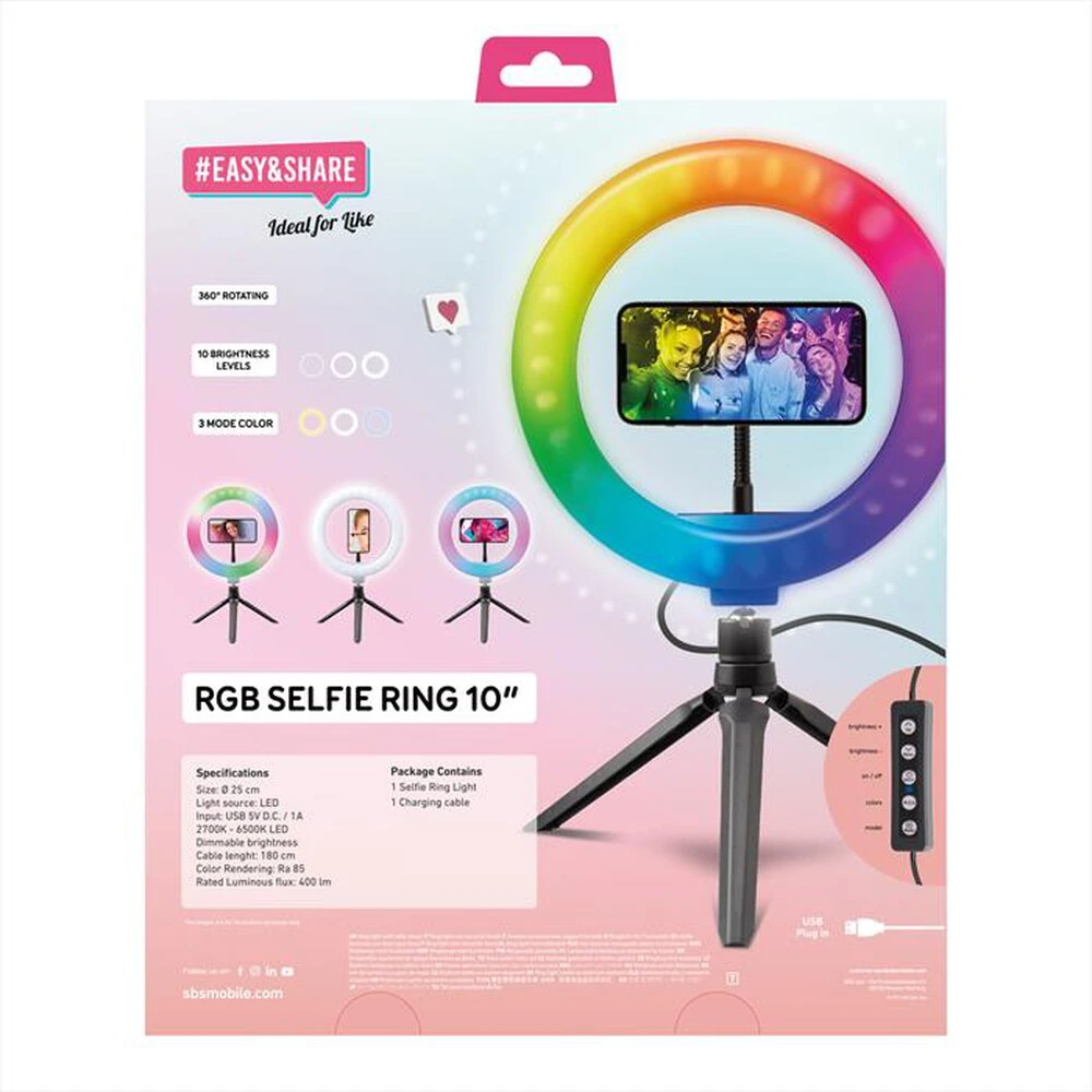 SBS – TESELFIRINGCLIP10RGB Selfie Ring Da 10″