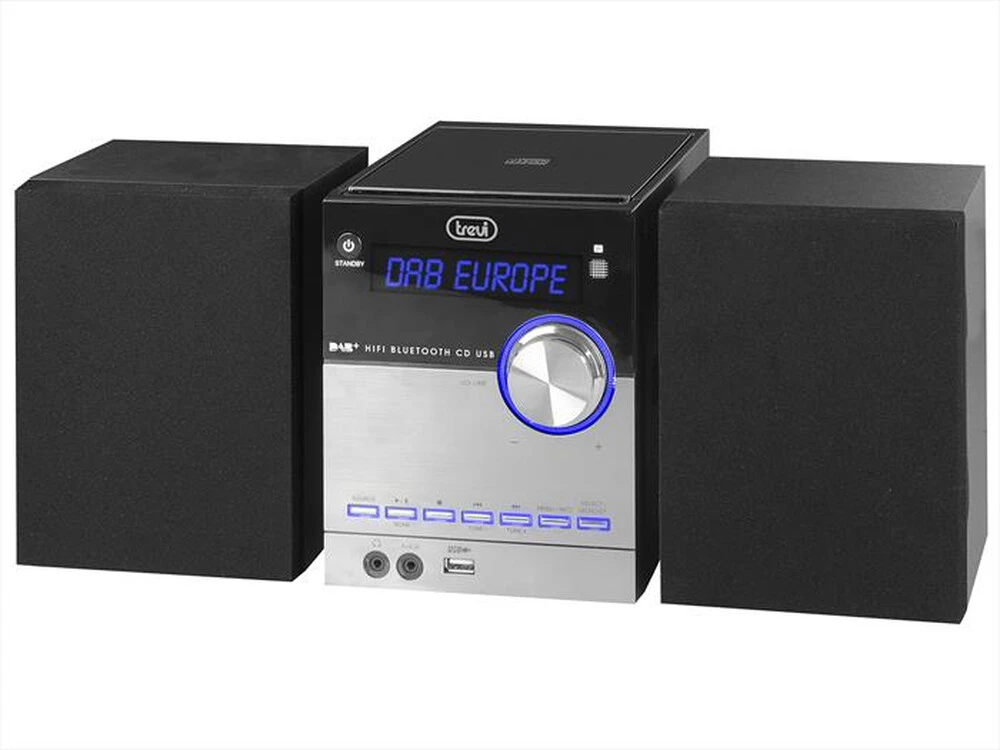 | Descrizione marketing | IlSistema Stereo Hi-Fi con Radio DAB/DAB+ Trevi HCX 10D8 DAB è un apparecchio compatto ed elegante dalle innumerevoli funzioni, ideale per godere di ottime performance musicali. Trevi HCX 10D8 DAB è dotato di lettore mp3 integrato, di ingressi USB e AUX-IN e di presa cuffie. Potrai connettere lo stereo di Trevi a tutti i dispositivi dotati di connessione Bluetooth, per riprodurre i tuoi brani preferiti direttamente da cellulare, tablet o pc. Oltre alle classiche frequenze radio analogiche, con Trevi HCX 10D8 DAB potrai ascoltare anche tutte le stazioni che trasmettono con segnale digitale, grazie alla radio DAB, visualizzando le informazioni sul display alfanumerico LCD con retroilluminazione blu. Inoltre, è possibile memorizzare fino ad un massimo di 20 stazioni per averne un più facile accesso e controllare il sistema stereo anche da remoto, tramite l’apposito telecomando in dotazione. |