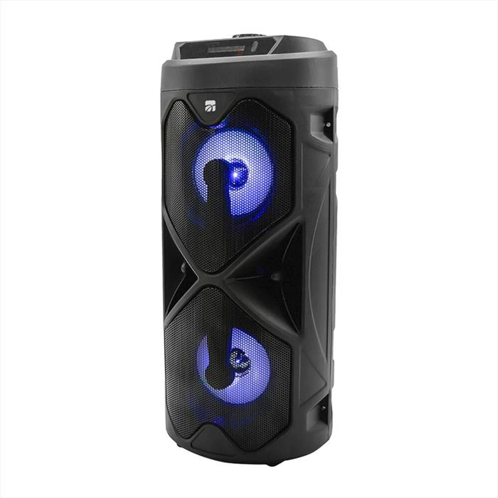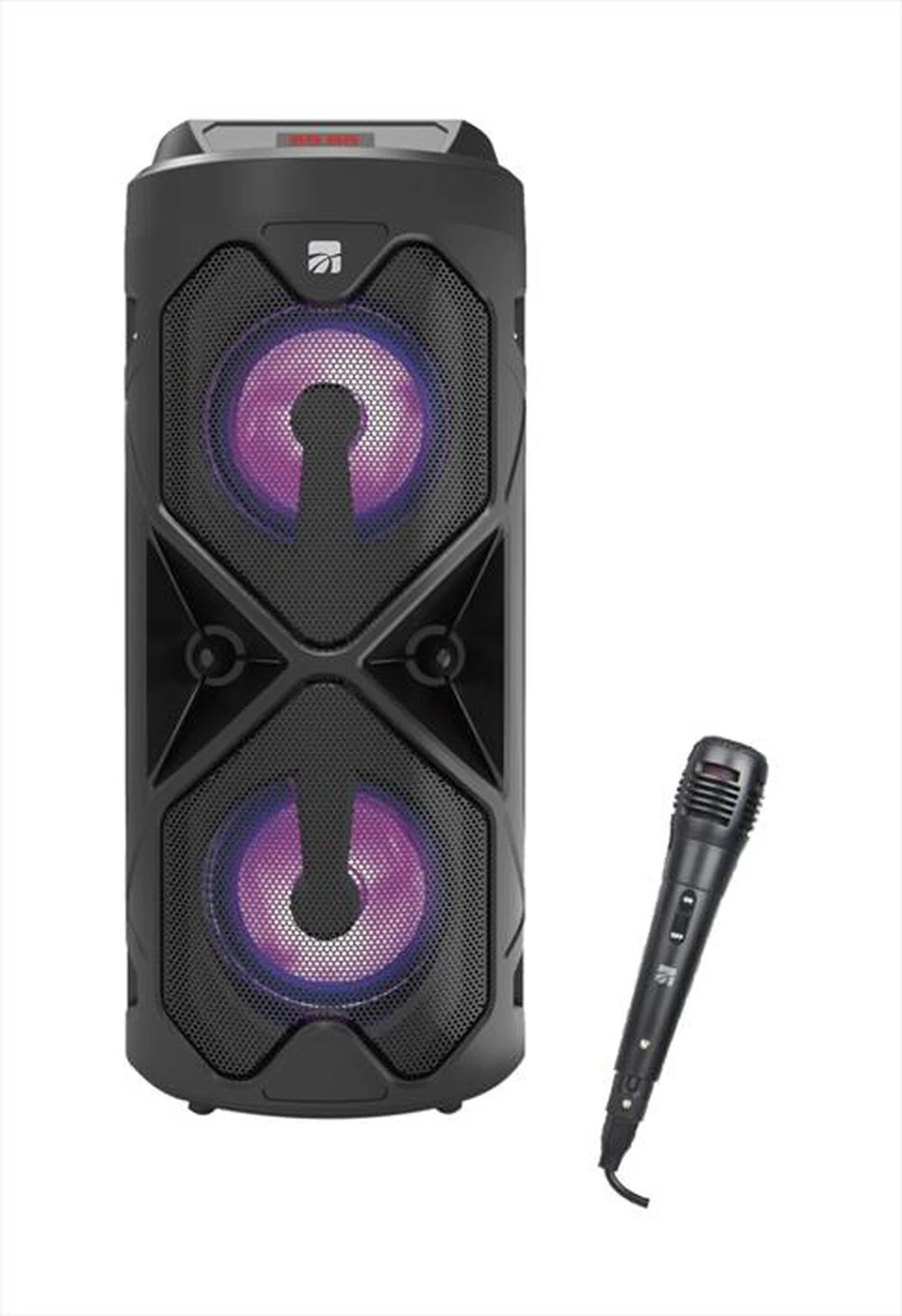 Progettato per una perfetta esperienza di audio, portando cosi festa ovunque tu voglia. Lasciati travolgere dai beat dei tuoi brani preferiti, anche se sei distante dallo speaker, grazie a questo potente sistema audio compatto. – Porta la festa sempre con te: a casa con gli amici o nel bel mezzo di un party, include maniglia integrata per la massima portabilità e praticità in tutta sicurezza. – Materiali di alta qualità: realizzato con materiale di alta qualità e cassa in ABS per un audio migliore. – Luci LED: crea un’atmosfera da party con gli speaker con illuminazione a LED: gli effetti luminosi pulsano a ritmo di musica. – Sii la star della festa: il divertimento è assicurato con l’ingresso per microfono che permette di cantare insieme ai tuoi amici i vostri brani preferiti. – Incluso microfono karaoke – Funzione TWS: permette di accoppiare tra di loro due dispositivi audio via Bluetooth